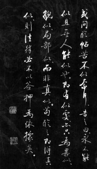 或问临帖苦不似奈何?告之曰:永不能似,且无人能似也。既有似者,亦只为略似、貌似、局部似,而非真似。苟临之即得真似,则法律必不以签押为依据矣。