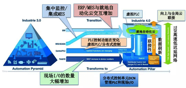 更值得关注的是PLC的体系架构正面临着颠覆性的创新,下一代的PLC极大可能会是分布式控制节点(DCN)取代现场要求实时控制的PLC,处在本地云端的虚拟PLC承担非实时要求或实时性要求不高的PLC功能,依靠强有力的OPC UA over TSN,构成开放的分布式的新型PLC系统(详见附图)。