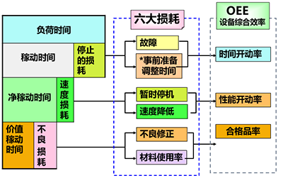 设备的OEE水平不高,是由多种原因造成的,而每一种原因对OEE的影响又可能是大小不同。在分别计算OEE的不同“率”的过程中,可以分别反映出不同类型的损失。