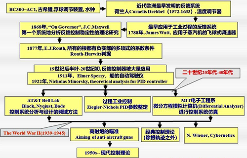 2005年,中国科学院系统控制重点实验室给室里研究生们开了一次“控制理论基础”的课程,由张纪峰、方海涛和笔者联合上课,每人讲4次,每次4小时。分配笔者讲“线性系统的频域响应方法”部分,主要考虑到控制室的学生本科大多是学数学的,对经典控制理论了解不多,希望给大家补上这部分内容。张纪峰还慷慨地给了笔者一堆资料,其中一本1996年IEEE Control Systems杂志第3期控制历史专辑(special issue on the history of control)让笔者如获至宝,至今仍霸为己有。当时看得如饥似渴,不断有“原来是这样”的收获,边看边想,如果学生们在学习第一门控制课程时就了解这些过往,控制课程就不再只是一条条定义一堆堆定理,还知道它们是为了解决什么问题而提出和建立的,解决了哪些问题,不足又在哪里。于是,就特别想在课上与学生们分享一下控制历史,但又感到历控制史太庞博,能讲出来的只是自己被吸引有所感触的部分,难免挂一漏万,因而加上“走马观花”的前缀。
