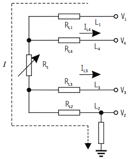 图3 Rt为热电阻,RL1为导线L1的等效电阻,RL2为导线L2的等效电阻,RL3导线L3的等效电阻,RL4导线L4的等效电阻