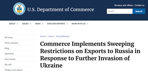 美国商务部称,该措施主要针对俄罗斯的国防、航空航天和航运业,希望“切断俄罗斯获得重要技术的途径,萎缩其工业基础关键部门,并削弱其在世界舞台上施加影响的战略雄心。”更重要的是,该措施将不仅限制美国企业出口技术给俄罗斯,在美国以外生产的使用了特定美国设备、软件或设计图的外国商品也被纳入其中,是美国针对一个国家出台的最为全面的出口管制。