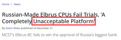 tom'sHARDWARE :俄罗斯自研的Elbrus CPU测试失败,“一个完全不可接受的平台”