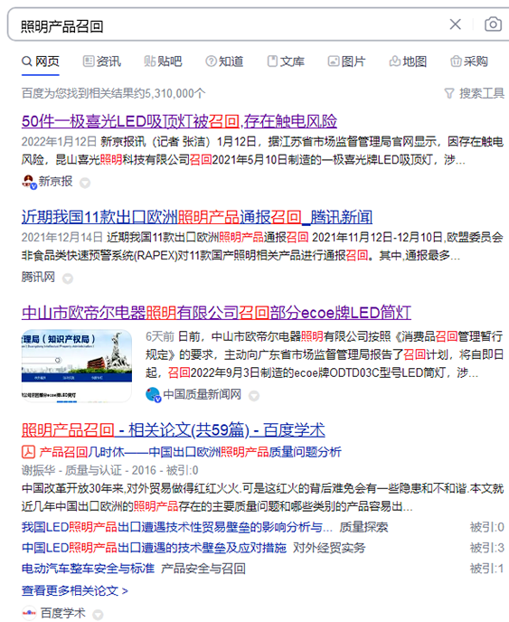 尽管目前电气行业召回事件相对比较少,其中作为电器产品的照明产品召回相对多点。照明产品召回原因大多涉及到安全问题。归纳起来主要有以下几个方面: