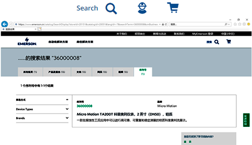 首先,可以在艾默生官网的搜索栏中,输入产品铭牌上的序列号。在浏览器中就会清晰地展示此产品的型号,口径,材质和应用场景。