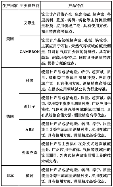 国内主要生产流量计的厂家包括重庆川仪自动化股份有限公司,上海光华仪表有限公司,沈阳兰申电器有限公司等,流量计种类涵盖了电磁,超声波,质量,差压,孔板,涡街,涡轮,热式等,整体技术研发还处于追赶国外同类型产品阶段,流量计产品指标和国外同类型产品接近和持平。