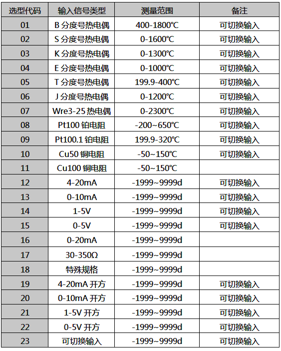 [××]:详见“仪表输入类型表”(18种输入型号类型可自由切换)
