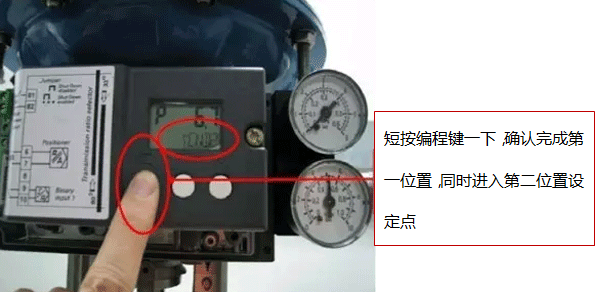 这时可通过上和下键移动执行机构达到每一个最终位置,来检查机械装置是否可在全部调整范围内自由移动。对于直行程移动执行器,使杆达到水平位置,显示屏将显示一个介于P48.0 到P52.0之间的值。如果不是这种情况,调整磨擦夹紧单元,直到杆水平并显示“P50.0”时。确切的说,你达到了这一值,定位器能测定的位移将更精确。