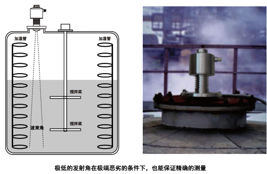 雷达波发射角<2°,即使是安装环境极为复杂的工况,也能稳定精确的测量出物位。