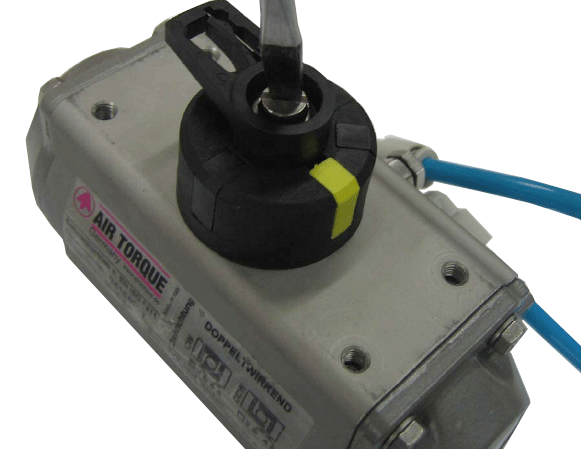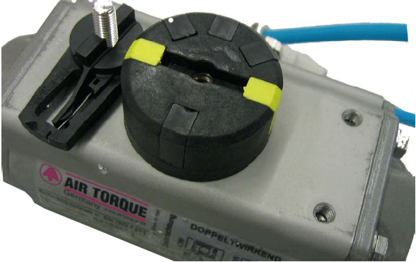 小心地把有安装支架的定位器放到执行器上,使藕合轮的轴嵌入驱动器内