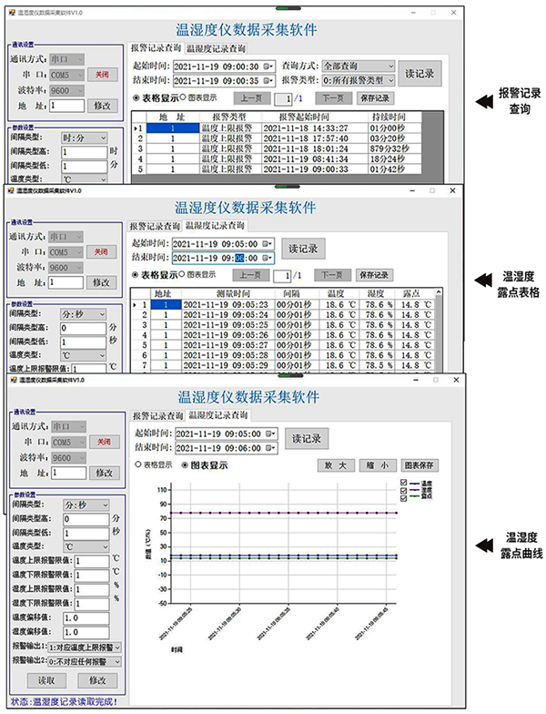 ②历史数据仅限数据采集软件通过通讯方式查询,大屏幕温湿度记录仪选型时需要带上RS485通讯,产品无USB接口