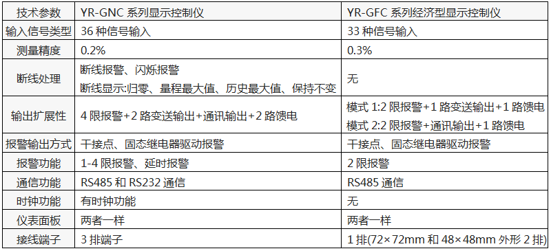 1、YR-GFC系列精度为0.3%FS,是YR-GNC系列0.2%精度显示控制仪精简版本