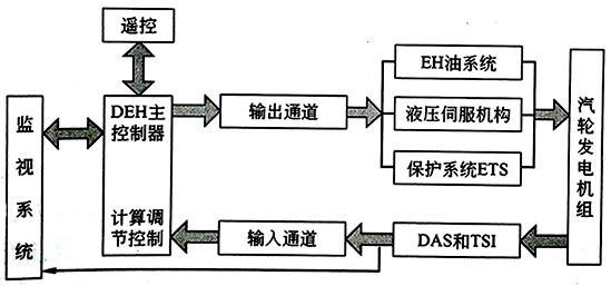 数字电液控制系统(Digital Electric-Hydraulic Control System,DEH)是保证汽轮机经济运行必不可少的条件。汽轮机DEH的任务是根据控制指令(目标转速、负荷及其变化率),控制运行方式、阀门试验方式、机组状态参数和转速、发电机功率等被控量,通过数字控制器输出控制信号,经与反馈信号比较后,其偏差经过伺服放大后,送到电液转换器,自动控制进汽量,以改变蒸汽转矩,在转速改变不大的情况下,达到新的平衡,以适应外界负荷或蒸汽状态的变化。