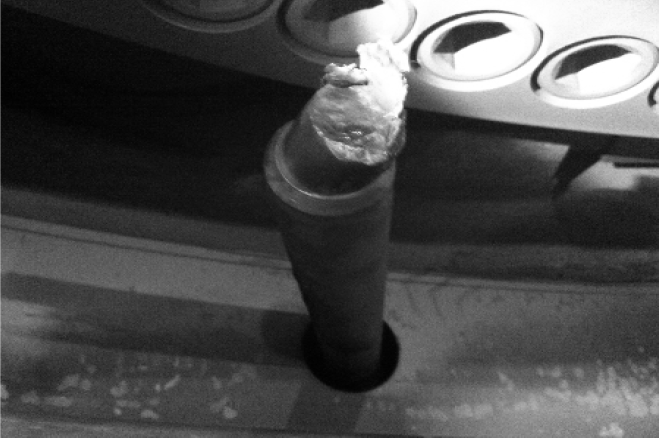 解体后发现左侧(从机头往机尾看)内、外套管都已完全断裂脱落,内套管掉落在内外缸之间,外套管掉落在高压内缸测温孔内。右侧内外套管头部也已损坏,发生了折断现象。断裂情况如图1-图3所示。