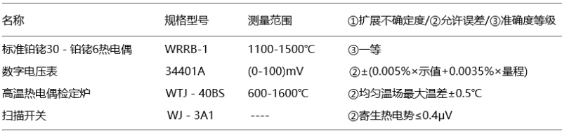 2、标准器和配套设备铂铑30-铂铑6热电偶检定所需的标准器和配套设备相关信息如下表3所示:
