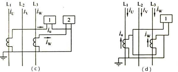 图2(c)为电流互感器两相V形接线 图2(d)为电流互感器两相电流差接线