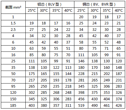 注2:BLV-105型铝芯耐热线的载流量可按表中的数据乘以0.78。