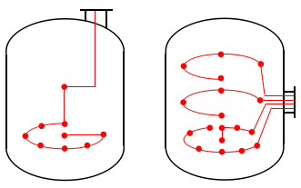 多点铠装热电偶是一种可检测多个温度点的热电偶,不需在设备内部设置加厚的承压套管,单支多点铠装热电偶和整体铠装多点热电偶铠装护套能承受压力,并可在一定范围内进行弯曲,不会影响接头和内部的测量元件和线路,因此只需要一个开口就可以在反应器同一平面或不同平面的不同位置设置测温点,如图6所示。