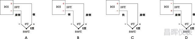 11、以下有四种K型热电偶配补偿导线与DCS的连接方法,正确的是(A)