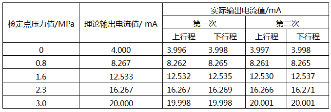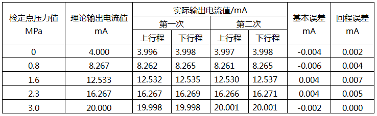 比较各检定点测量误差和回程误差均小于允许误差,则判定此压力变送器精度合格,可以直接使用,不必重新调整。可出具检定证书。