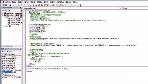 ③进入后,即可看到熟悉的VB窗口了。在按钮属性中,插入如下的代码。