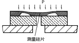 如图3所示,对测量硅膜片的形状做了特殊设计,将原来的内凹平面蚀刻成环状凹陷,中间保留一平台,而全动态的压阻效应惠斯登电桥蚀刻在环状位置处。如图4所示,经过这样的设计更改,随着压差P的增加,测量硅膜片发生位移,当P增大到一定的值后,底部的平台与基础硅片接触贴合,阻止测量硅膜片的进一步位移,从而起到了保护作用。