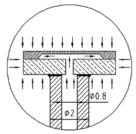 图2 金属电容传感器轴向解剖图 图3 受工作静压时的工作剖面图