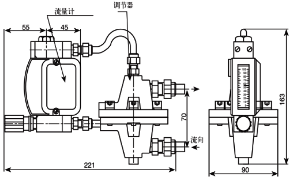配置金属管浮子流量计/恒定出口压力恒流阀的吹扫装置外形尺寸