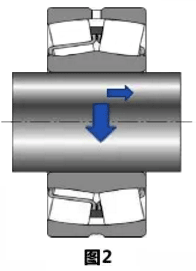 图2所示为我们通常比较好理解的受力情况,轴承承受较大的径向载荷,而轴向载荷的值较小;图1则反映的是另外一种情况,尤其是在垂直轴的应用中,轴承所承受的轴向载荷远大于径向载荷(大于某个特定的比例,在后续的文章中会详细介绍)。