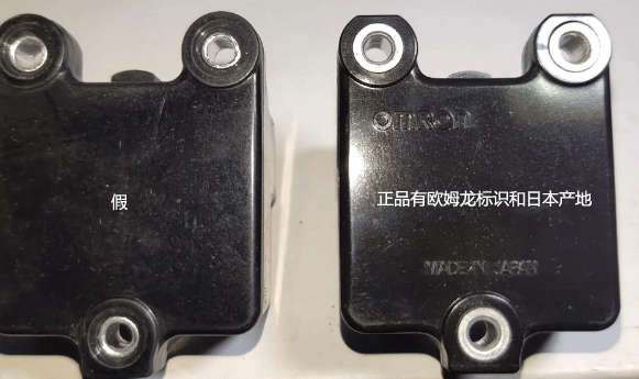 正品欧姆龙机械限位开关外壳上有产品参数;假欧姆龙机械限位开关没有。