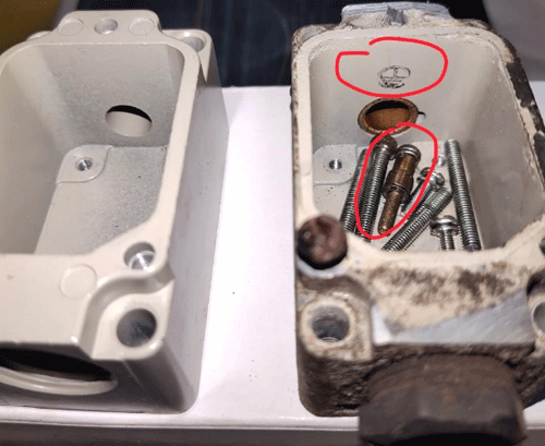 正品欧姆龙机械限位开关螺丝是通的;假欧姆龙机械限位开关镀锌螺丝。