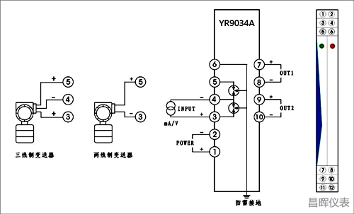 以fkswng0.1%精度高性能YR9034A-0-GGNN-N型一进二出、模拟量输入信号隔离器为例: