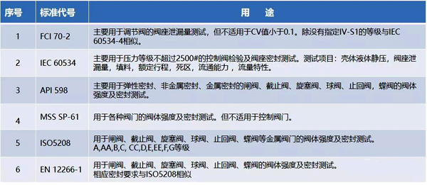 ①美国国家标准/流体控制组织ANSI/FCI70-2《控制阀阀座泄漏》最新为2013版;