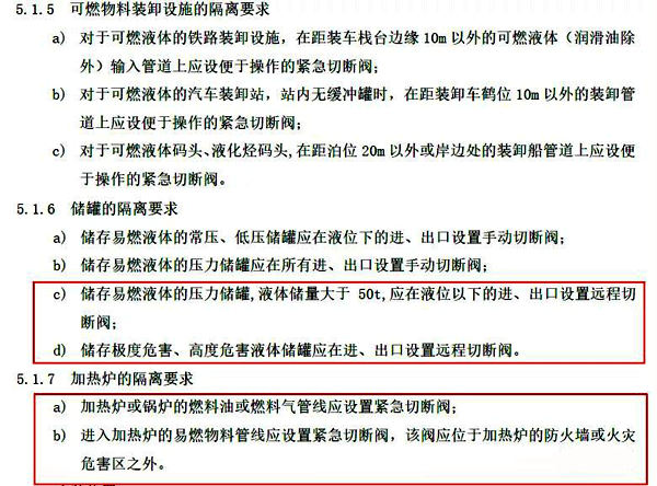 4、紧急切断阀防火方面的技术要求