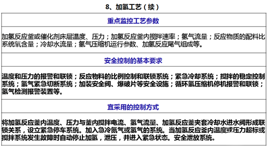 首批重点监管的危险化工工艺安全控制要求、重点监控参数及推荐的控制方案。