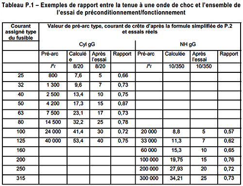 熔断器的配置是按防雷器在8/20us波形下最大单次冲击计算配置额定值,以实现对SPD的短路失效进行保护。标准IEC61643-12,表P.1给出了熔断器耐受冲击能力的一些规格、尺寸的试验测试数据。如表1所示: