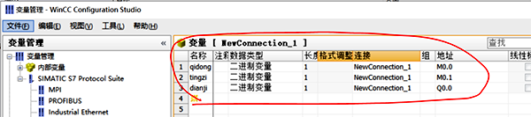 7、新建PLC程序中用到的变量“名称”-“数据类型”-“地址”