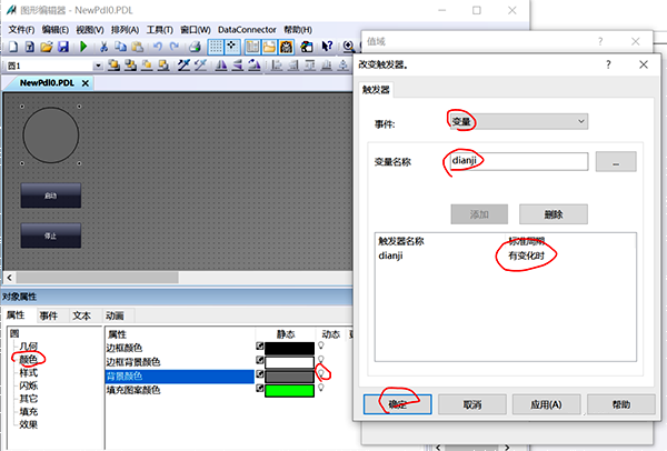 9、“颜色”-右键灯泡选择“动态对话框...”-填入相关设置-“确定”