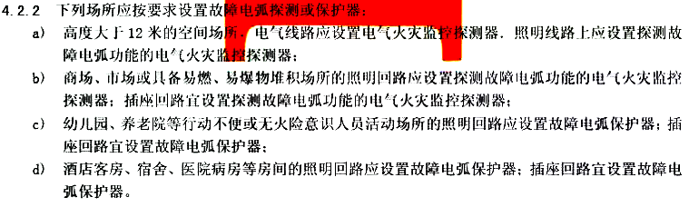 简言之,人员密集场所+有可燃物的房间需设置AFDD, 设置部位为照明和插座回路。