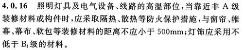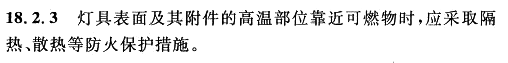 对这条规定笔者的看法与本文第1.19点的看法类似,如果对所有照明灯具一刀切式的要求是偏保守且不合理的,控制的重点应该在“高温部位”上,这一观点在《电气验收规范》中第18.2.3点的规定中得到印证,但如何量化“高温”倒是值得讨论。