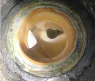内漏主要出现在FLOWSERVE的旋塞阀和YADI的旋塞阀,解体检查,都是阀门小开度时,PTFE衬套接液部分损坏,阀芯表面有白色晶体,很难去除。分析有两个原因:第一,在小开度时,介质流速最高,根据介质成分表,含固量在5%~20%,当介质高流速或压力损失和含固体介质流过PTFE衬套时,对其造成冲刷,磨损最严重;长时间在小开度运行,造成衬套损坏,也导致内漏增大;第二,工艺水以渣场回水为主,会有氟硅酸盐产生,如氟硅酸钾和氟硅酸钠性质,均为白色微不溶结晶,几乎不溶于冷水,在热水中水解成氟化钾、氟化氢及硅酸,其水溶液呈酸性,微量结晶体吸附于阀芯,增大阀芯的表面粗糙度,长时间开关调节,会对衬套有磨损。