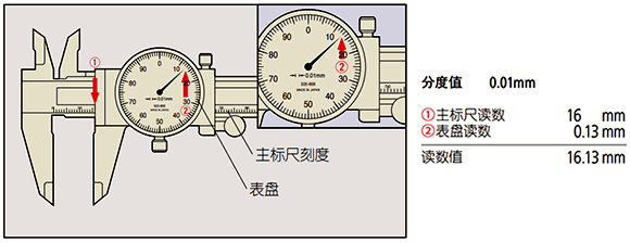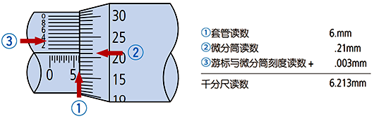 可以像上图那样读取到分度值0.01mm,也可以像下图所示那样,读取分度值到0.001mm。