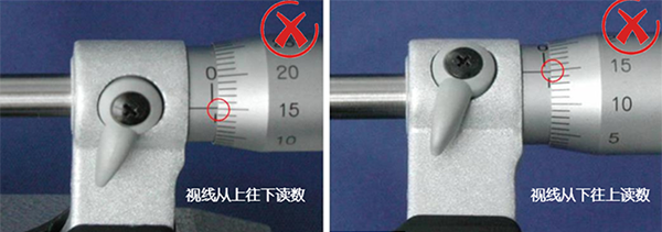 如果像(a)或(c)那样有倾斜角度去读数(如下图),会受到视觉偏差的影响无法读取刻度的正确位置,造成读数错误。
