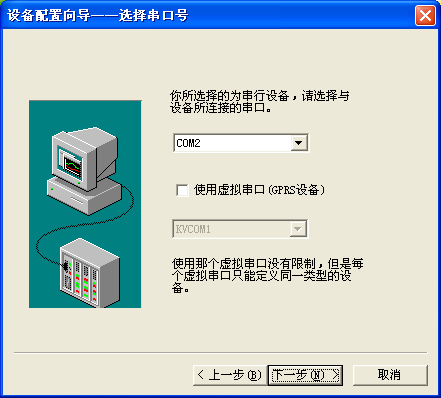 选择通讯串口。单击下一步,