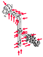 图11 复杂的引压系统的安装可能泄露点(箭头示意可能的泄漏点)