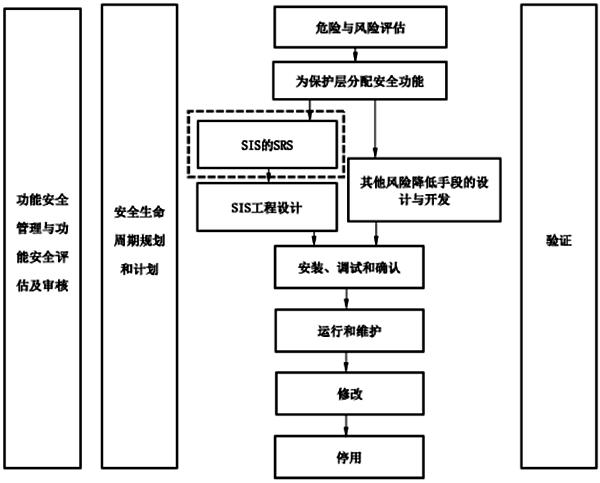 安全要求规格书的一般性要求应在SIS设计初期执行,一般认为在SIL定级后执行即可,这部分内容是SIS工程设计的输入文件。但是仪表、SIS系统和阀门的具体参数值,应该在详细设计后进行补充完善。采购根据SIS设计文件购买设备,设备厂商提供相关型号等数据由自控专业继续补充SRS文件;最后验证人员根据SRS的要求进行SIF回路的验证,当SIL验证不通过时需重新调整SRS中的内容。