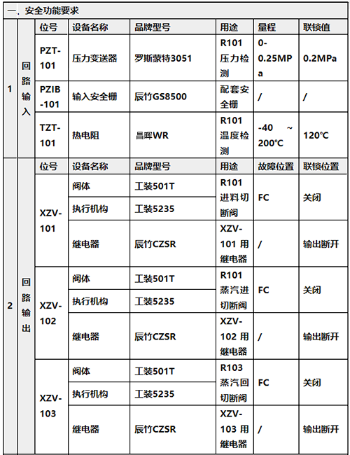 28、与每个SIF有关的输入、输出仪表以及执行机构清单,保证位号的唯一性。