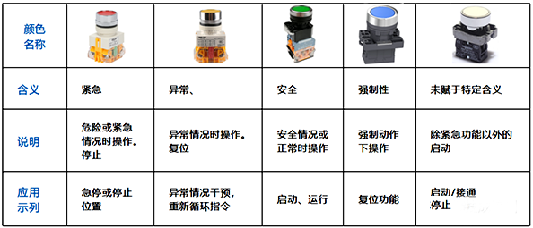 由于按钮开关和指示灯的颜色基本都一样,这里列出一张表供大家参考讨论,如下表1所示: