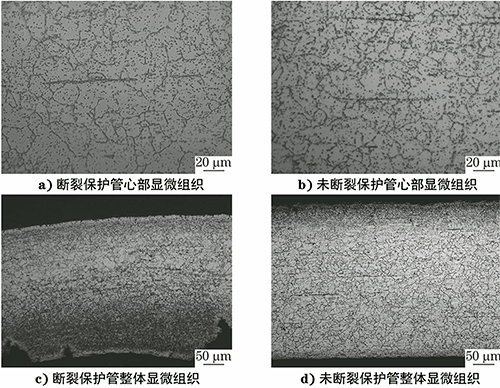 图2 断裂和未断裂铠装热电偶保护管的显微组织