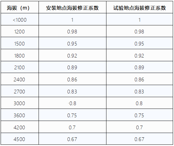 表1 外施耐受电压水平修正系数